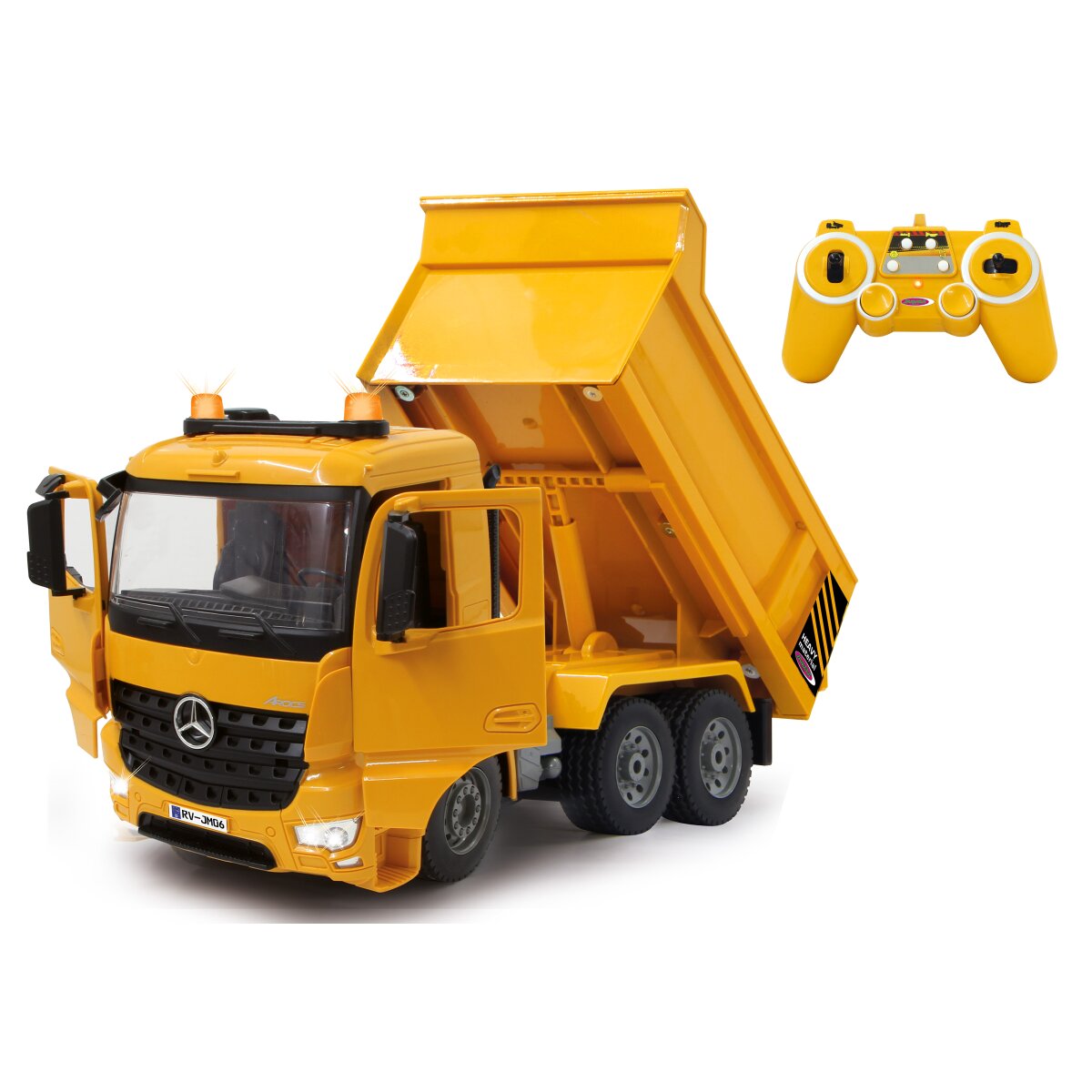 Achtung, eine neue Ladung Spaß für unsere Kids! Mit dem offiziell lizenzierten Muldenkipper von Mercedes-Benz bietet Jamara ein weiteres Must-Have für jede Spielbaustelle. Der heb- und senkbare Kipper, das Motor- und Rückfahrwarngeräusch, gelbe LED-Signalleuchten und die Hupe sorgen für realistischen Spielspaß. Der leistungsstarke Mercedes-Benz ist mit Allradantrieb ausgestattet und verfügt über Programmierfunktionen wie die Wiederholfunktion, eine Abschaltautomatik, die Demofunktion und eine Lernfunktion zum automatischen Ausführen bestimmter Arbeitsabläufe. Der Mercedes-Benz Muldenkipper ist ein weiteres leistungsstarkes Zubehör für die Kinderbaustelle.